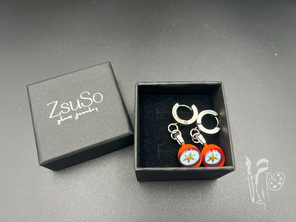 A fülbevalók ékszerbemutatóra vannak csomagolva.