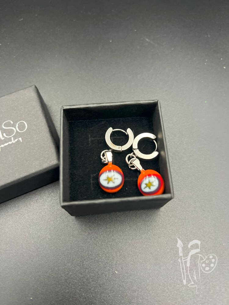 860 fokon olvasztott Dichroic és Bullseye üvegekből egyedileg készítettek a medálok.
