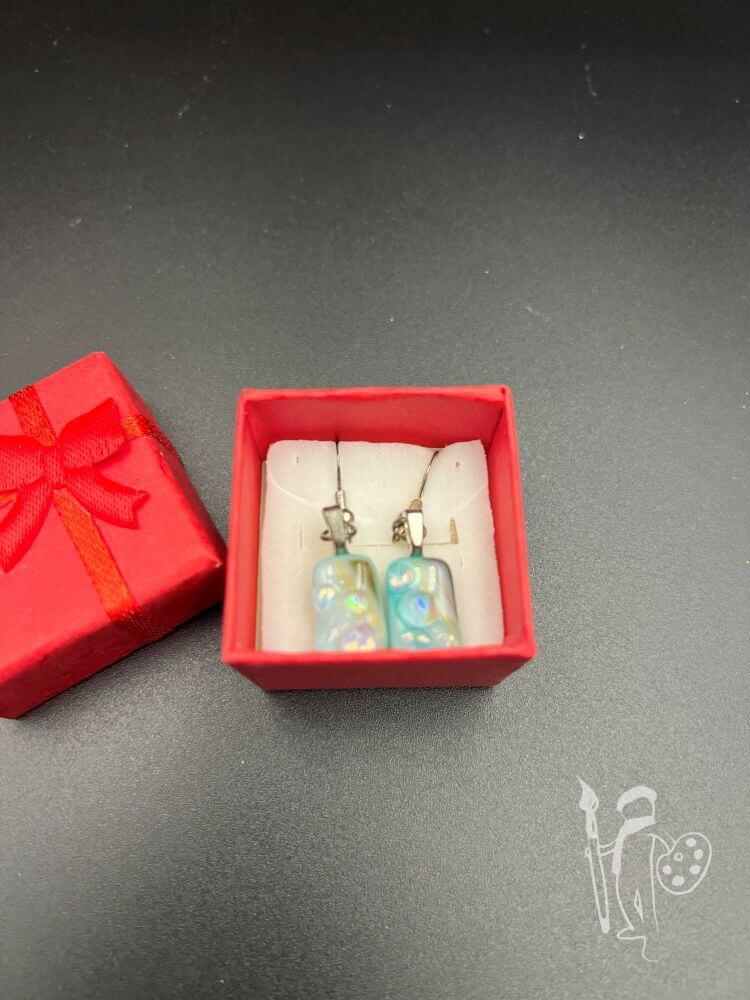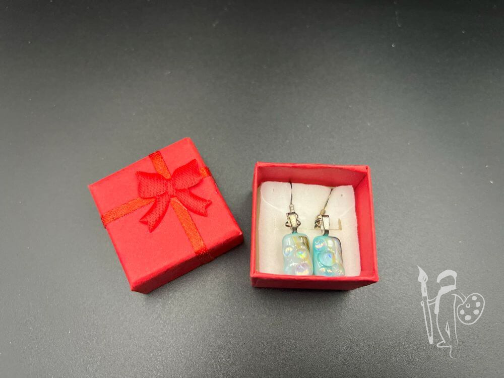 A fülbevalók ékszerbemutatóra vannak csomagolva.