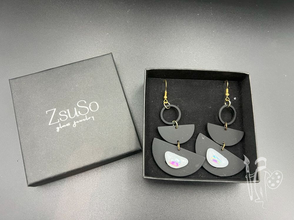 A fülbevalók ékszerbemutatóra vannak csomagolva.