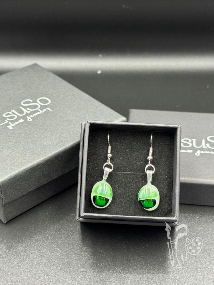 A fülbevalók ékszerbemutatóra vannak csomagolva.