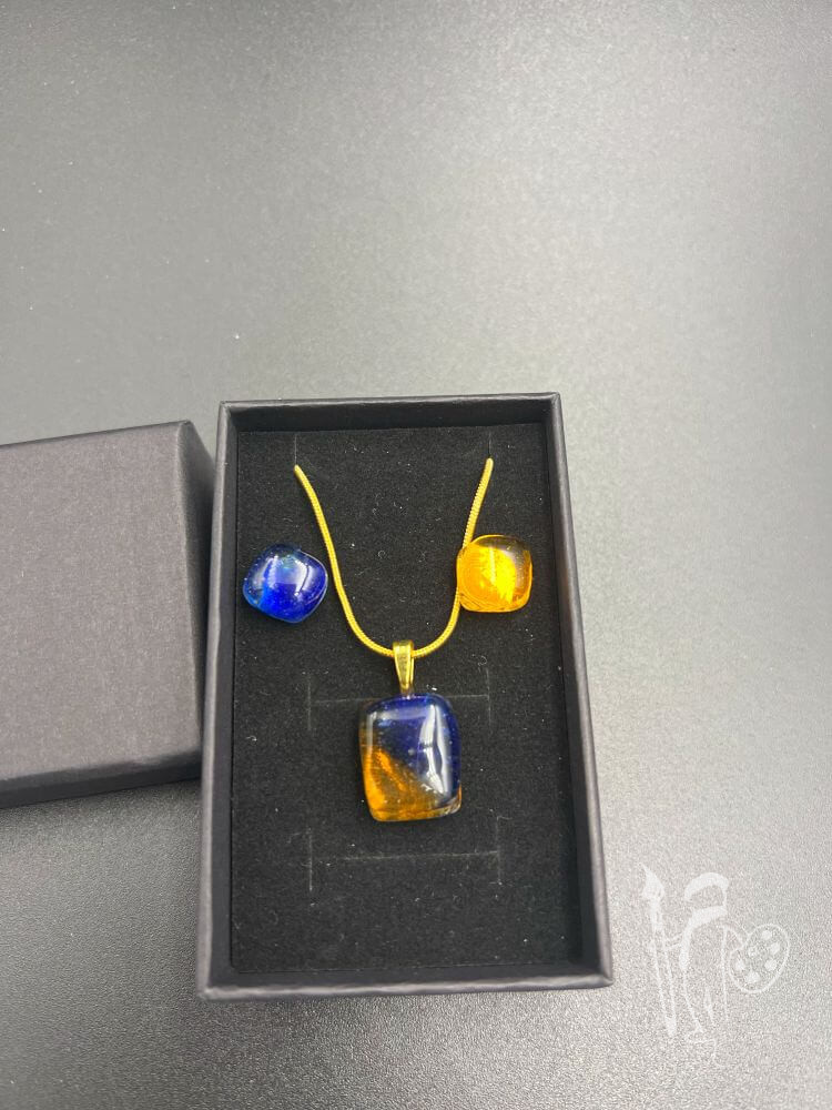 860 fokon olvasztott Dichroic és Bullseye üvegekből egyedileg készítettek a díszek.