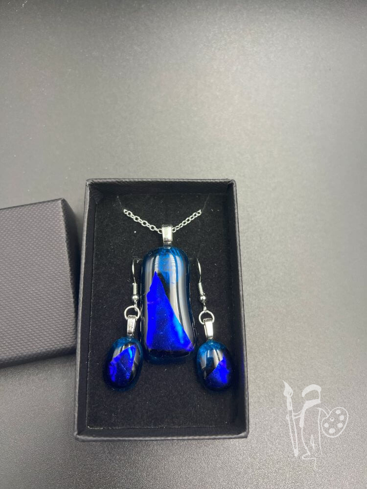 860 fokon olvasztott Dichroic és Bullseye üvegekből egyedileg készítettek a díszek.