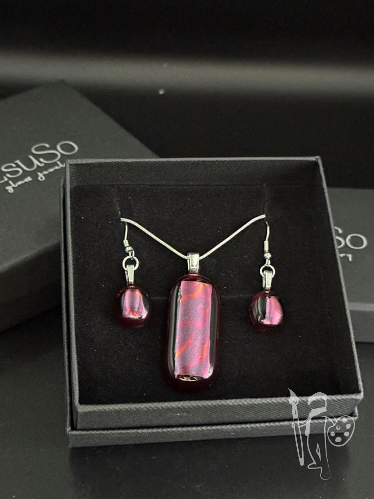 860 fokon olvasztott Dichroic és Bullseye üvegekből egyedileg készítettek a díszek.