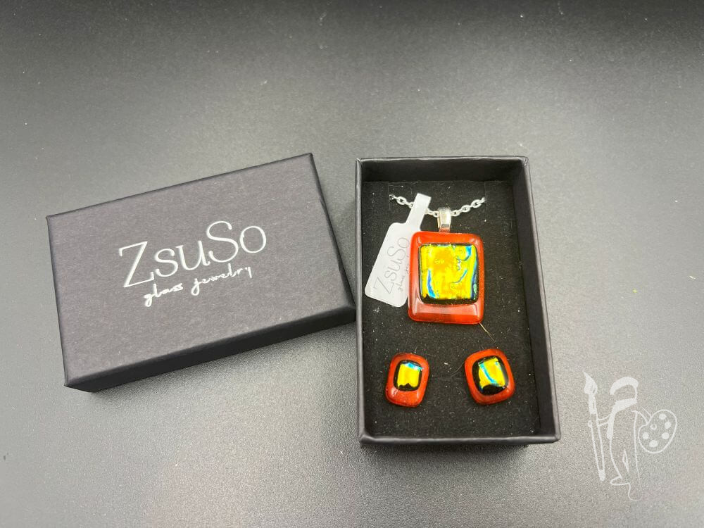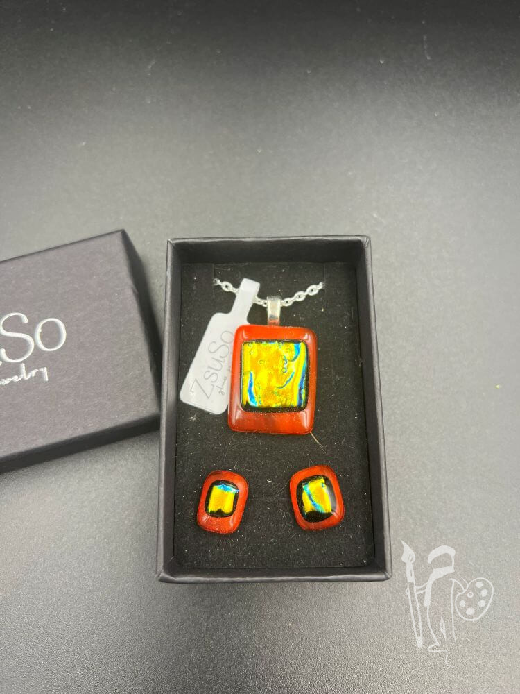 860 fokon olvasztott Dichroic és Bullseye üvegekből egyedileg készítettek a díszek.