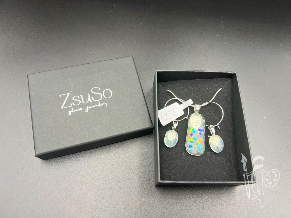 860 fokon olvasztott Dichroic és Bullseye üvegekből egyedileg készítettek a díszek.