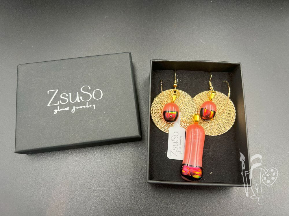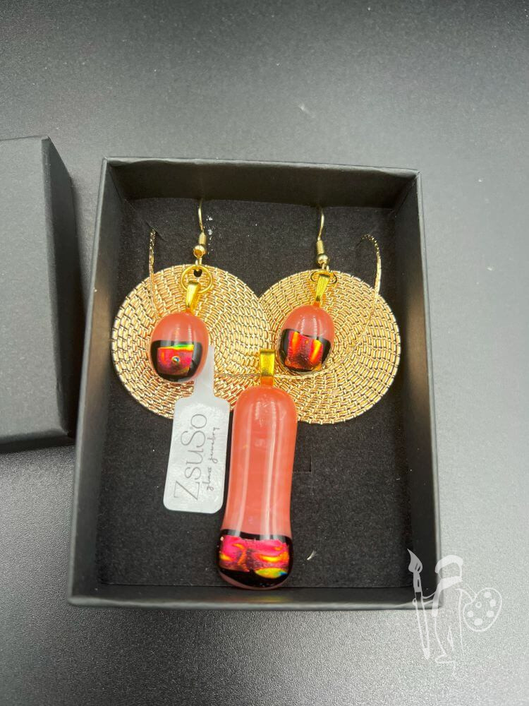 860 fokon olvasztott Dichroic és Bullseye üvegekből egyedileg készítettek a díszek.