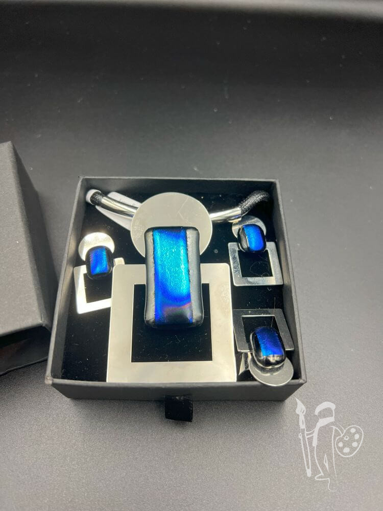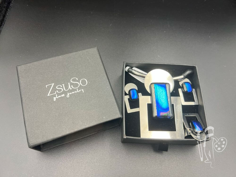 860 fokon olvasztott Dichroic és Bullseye üvegekből egyedileg készítettek a díszek.